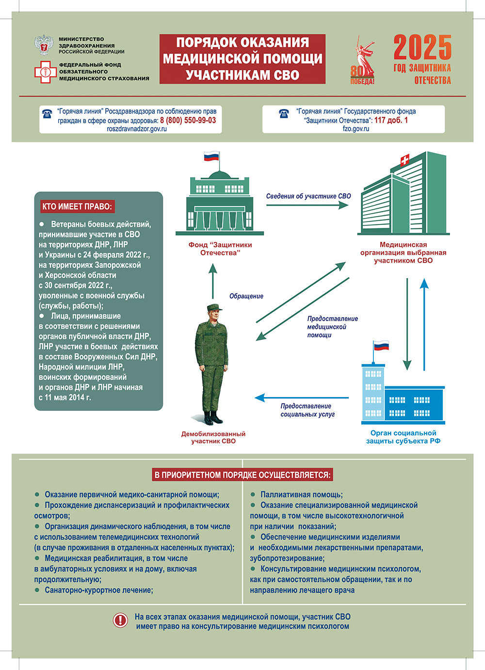 Для участников СВО и ветеранов боевых действий Постановлением Правительства РФ от 27.12.2024 № 1940 «О Программе государственных гарантий бесплатного оказания гражданам медицинской помощи на 2025 год и на плановый период 2026 и 2027 годов» предусмотрено: